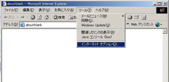 @ IEを起動し、「ツール」→「インターネットオプション」を選択