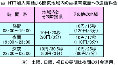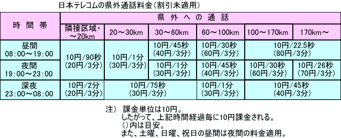 県外への加入電話通話料金