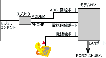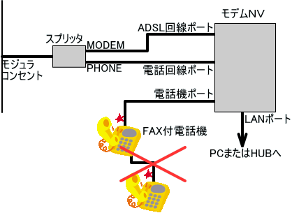 モデム−NVの電話機ポートのドライブ能力の関係で、電話機は1台しか接続できません。