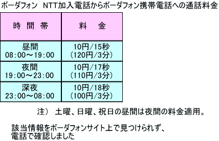 加入電話から携帯電話への通話料金